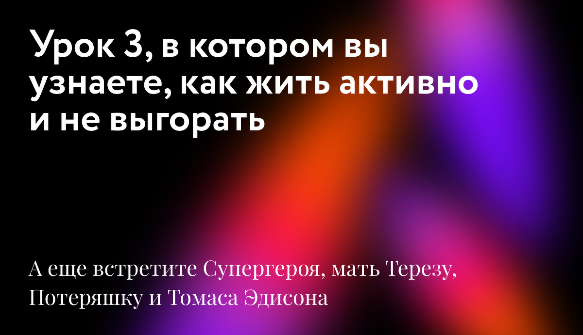 Подумайте, что заряжает именно вас. Запишите несколько стратегий, которые помогут вам быстро восстановить энергию, если вы устанете