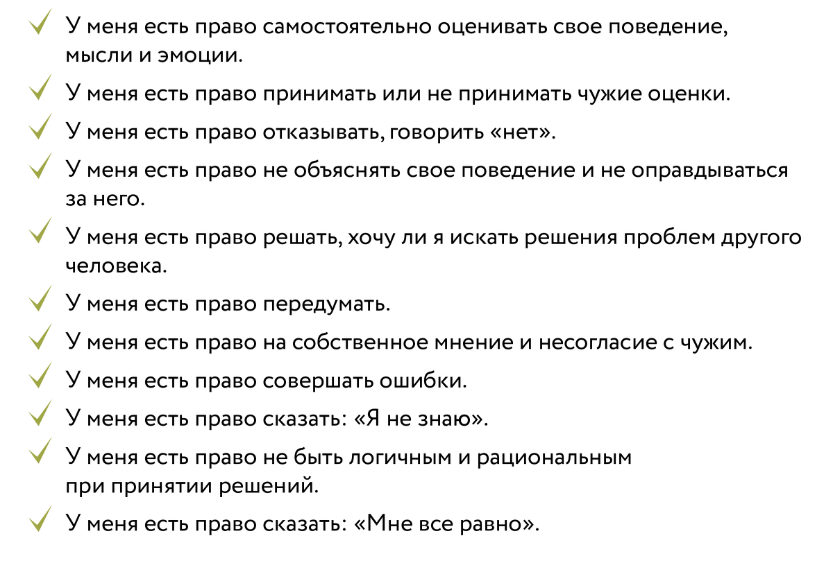 Используйте точные обороты речи, не пытаясь смягчить удар: вместо «могу» — «буду», вместо «мне нужно» — «хочу», вместо «мне придется» — «я выбираю».